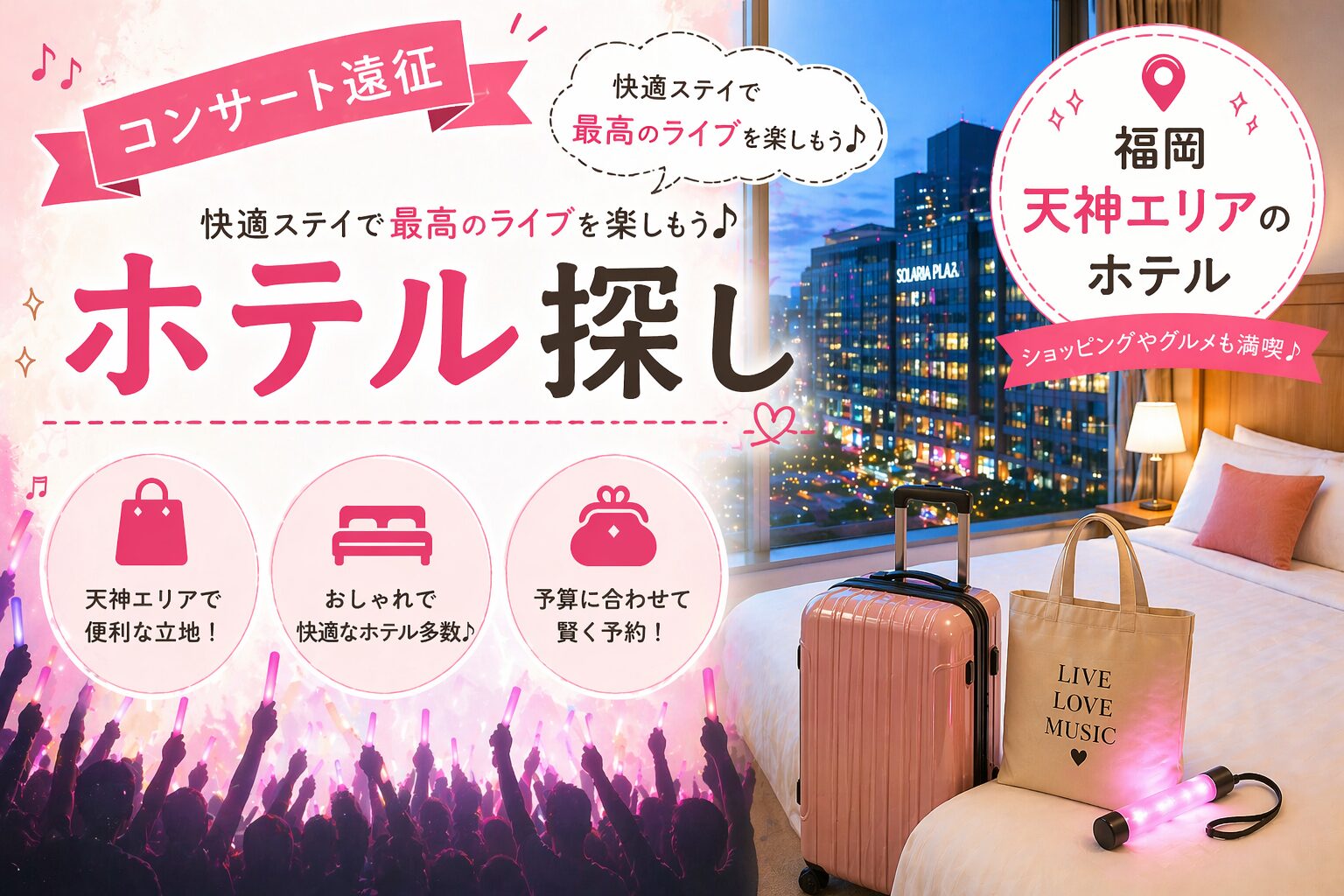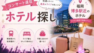 天神の中心、西鉄福岡(天神)駅直結の上質ホテルです。ショッピングや食事にも便利な最高の立地。ライブ後もそのまま天神で楽しめます!※駅連絡通路の時間帯にご注意ください。
